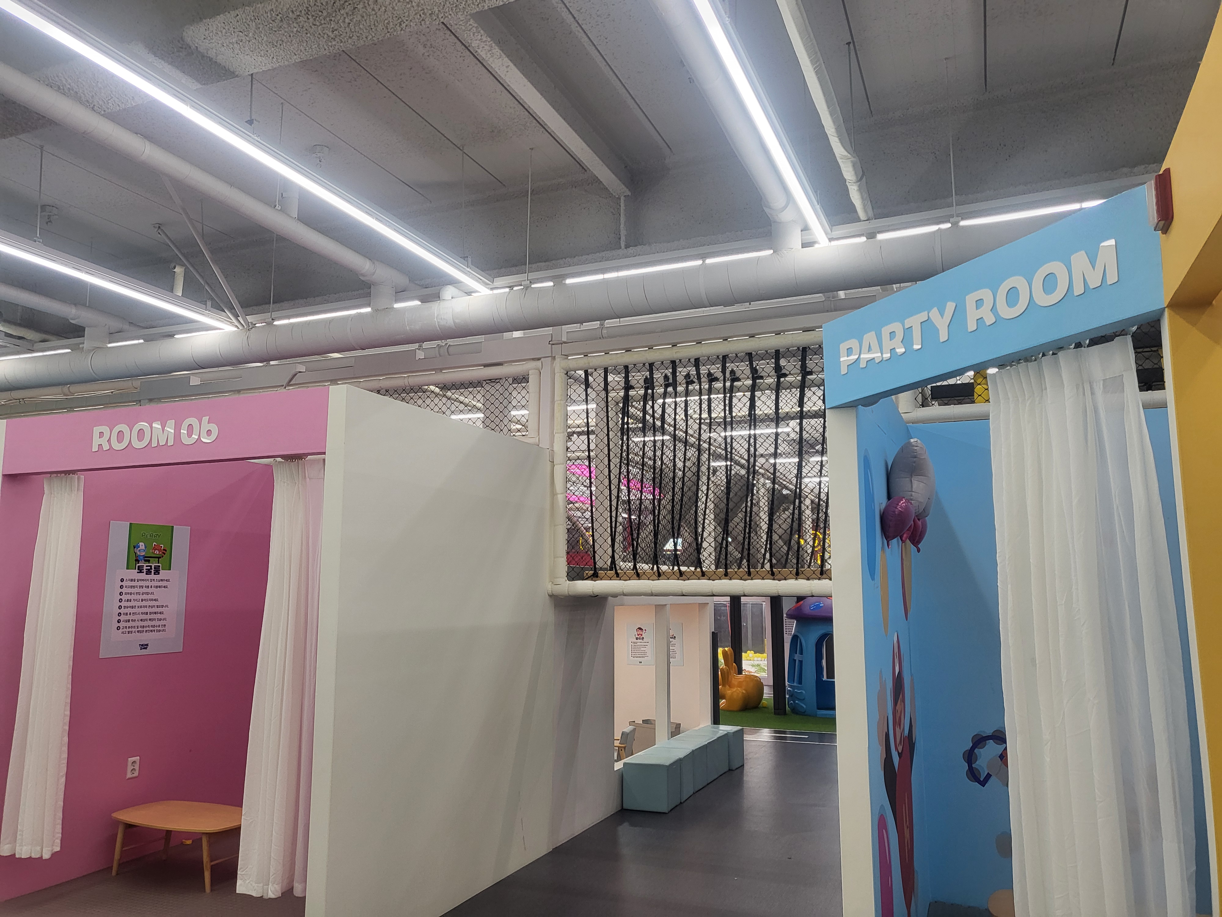 'ROOM 01', 'ROOM 02' 같은 파티룸도 있어서 아이 생일 때 여기서 파티하면 좋겠다는 생각도 들었어요. 우리 딸 생일이 다음 달인데 여기서 하면 어떨까 진지하게 고민 중입니다. 애들은 놀고, 케이크 먹고, 선물 교환하고... 완벽하지 않을까요?