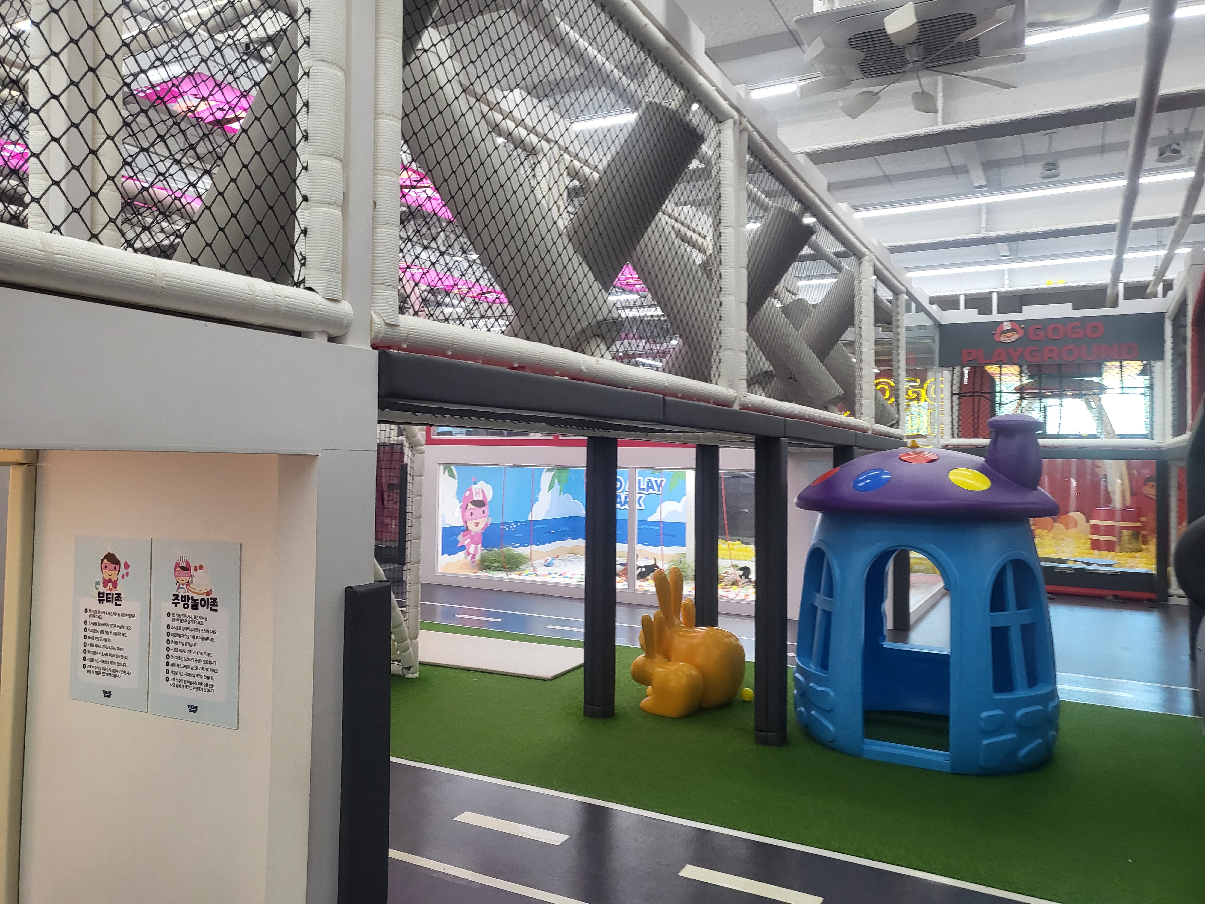 파란색 구조물로 된 이 공간은 3층으로 이루어져 있어서 아이들이 올라갔다 내려갔다 정신없이 뛰어놀 수 있어요. 우리 6살 아들은 여기서만 한 시간을 보냈네요! 특히 좋았던 건 안전망이 튼튼하게 설치되어 있어서 엄마 입장에서 좀 안심이 됐어요. 물론 저는 계속 "조심해~!" 소리지르느라 목이 다 쉬었지만요. ㅋㅋ