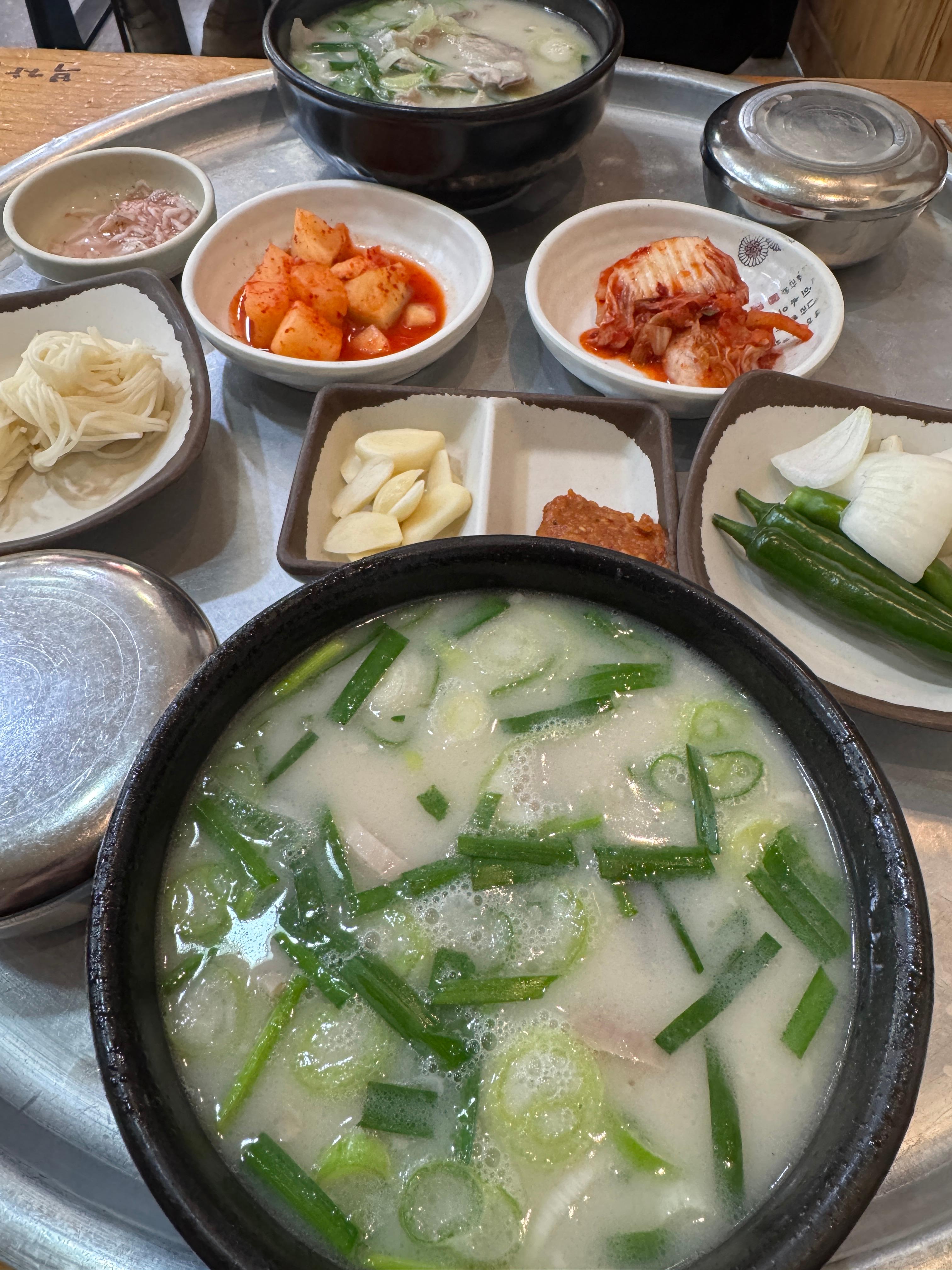 국물 한 숟가락을 떠먹는 순간, 그 진한 맛에 감탄이 절로 나왔습니다. 돼지뼈를 오랜 시간 우려낸 듯한 깊은 풍미가 입안 가득 퍼졌어요. 특히 중요한 건 돼지 특유의 잡내가 전혀 느껴지지 않았다는 점! 깔끔하면서도 진한 맛이 조화롭게 어우러져 있었습니다.